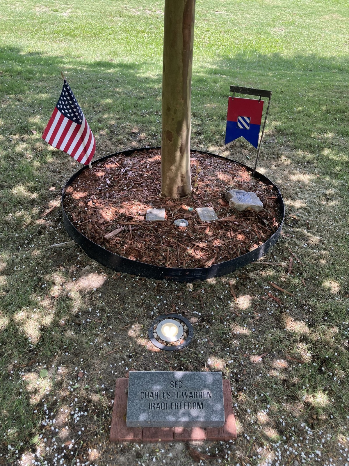 Most of all, I learned about the commitment of Soldiers here, in the mighty Rock of the Marne, the 3rd Infantry Division. We took the kids to the parade field where I marched out to the sounds of the band when I returned home. There is a path that now surrounds the parade field. It is called the Warriors Walk. When last we were here, it had one sidewalk and the trees were saplings. Now, they are trees creating a tunnel to walk through and read the stones of those who left from that field and did not return. So many stones.